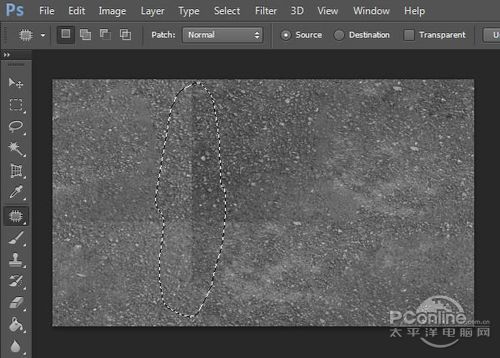 这样边缘的地方就都集中在图中央,下面选择修补工具,将接痕逐步移除。