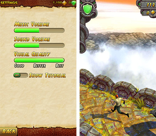神庙逃亡2出了后,神庙逃亡几乎失去了意义,神庙逃亡2无论是画面还是玩法都全面超越神庙逃亡,可玩性和速度感提高 非常明显,这款游戏已经不用我像大家过多介绍了,只不过笔者认为神庙逃亡2依旧没有达到我认为完美的程度,无论是画面还是人物动作都有很大提升空间,这么 火的游戏类型为什么就没有知名开发商来仿着做一款呢?