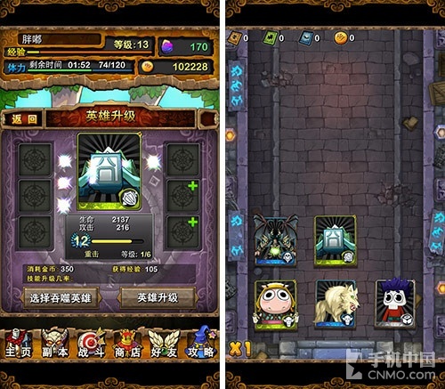 我叫MT Online中的副本战斗简单其画面不错,其战斗方式借鉴了iOS平台上的神迹突击,新颖的同时也可以让我们在战斗间隙对排兵布阵进行进行调整。而游戏的 成长系统也区别于以往游戏刷怪的玩法,更多的成长是依靠游戏中俘虏的英雄换来的。虽然另辟蹊径,但却获得了广大玩家的认可。