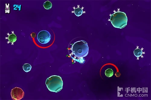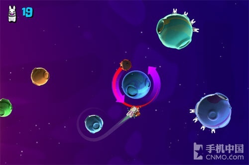 顾名思义,玩家要在游戏当中扮演这只兔子驾驶火箭在各个星球之间穿梭去寻找外星兔。当然了,并不是所有的星球上都有友好的兔子,有些上面可能还 会出现炸弹或者是小怪兽什么的。游戏的玩法简单至极,一开始先是会围绕一个星球不停的飞行,玩家需要触摸其它星球,它就会移过去了。如果点击所在的星球, 那么火箭的运行轨迹就会相反。越少的时间接触到全部的兔子,游戏的积分就会越高。