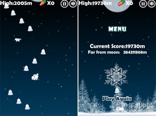 兔子跳铃铛是一款体积不大的游戏,很容易上手。无论是配乐还是场景的设计,都能让人在冬季感到一丝丝的浪漫与温馨。这款游戏的前身也曾经在 Flash游戏当中火爆一时,基本上可以说是原汁原味地搬进了手机。还有,笔者要提醒一句,女孩子一定会非常喜欢这个游戏的,你懂的了。