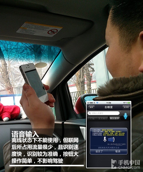 语音输入的准确性和识别率比较不错,但这是建立在手机连接互联网的情况下,我们为了测试高德导航是否能够在完全离线的环境下工作,已经取出了 SIM卡。所以高德导航的语音输入无法直接工作,在启动Wi-Fi热点后才恢复正常工作,不过这个情况仅限于测试,正常使用情况下,高德导航在有望环境下 完全可以正常工作,除了语音输入外还可以显示路况,占用网络流量不多。无望情况下虽然语音输入无法使用,但语音导航功能完全没问题。