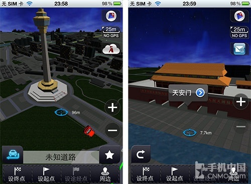 通过实测,高德地图的3D地图显示对于一般建筑的显示,位置很准确,但无法直接作为参照,而对于地标性建筑的则显示非常形象,如果你是异地司机来当地餐馆,那么使用高德地图的3D显示会很容易根据地标建筑找到目的地。
