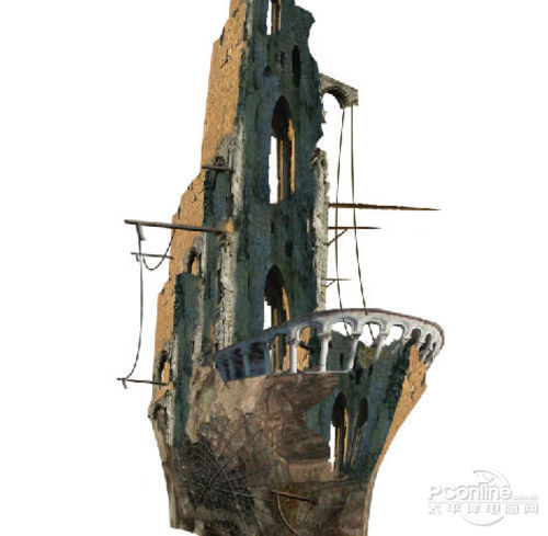 在刚才的基础上再增加一些破旧墙体,营造鬼船破旧的感觉。效果如下图所示。