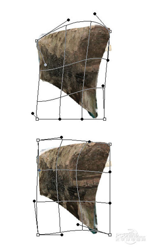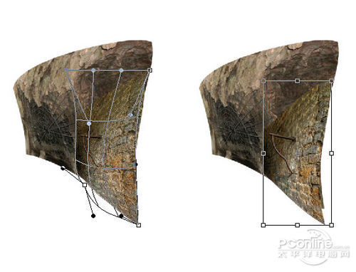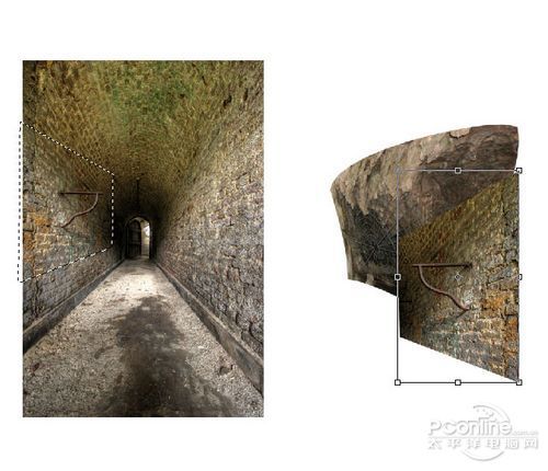 同样按Ctrl+T调出自由变换菜单,然后调整剪切出来墙体的形状。调整效果如下图所示。