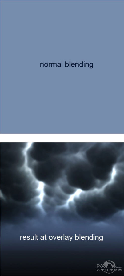 在乌云图层下面新建一个图层,然后按Shift+F5填充如下图所示的淡蓝色,图层不透明设置为100%、图层混合模式设置为叠加。效果如下图所示。