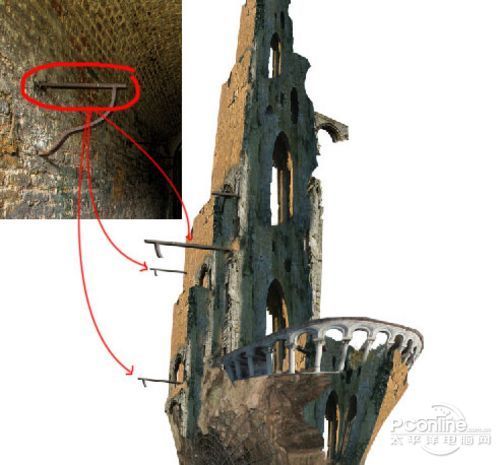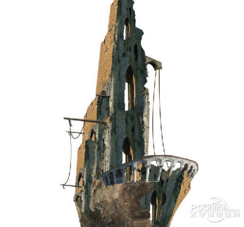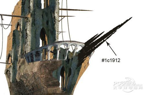 这一步再利用“Tower”素材将鬼船的船身外表修整好。打开“Tower”素材,然后如下图所示将需要使用的部分裁剪出啦。