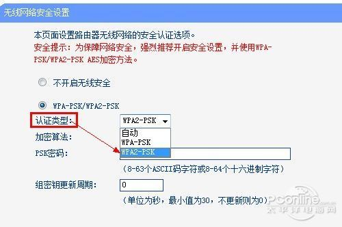 手动选择“WPA2-PSK”这个WIFI加密认证类型
