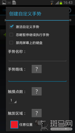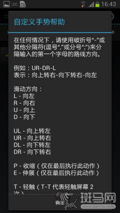 为了解决用户的DIY需求,GMD中支持用户自定义自定义手势,只不过这个手势的编程比较复杂,需要用户按照滑动方向编入方向的文字指令,系统才能根据指令进行识别。