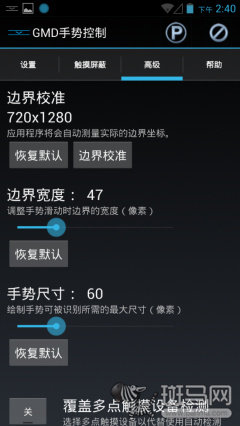 根据用户需求,还可以自定义手势的起始位置,不过根据小编在前面对于边界限定的测试经验而言,最好触发手势的位置不要过小,否则会造成相当多的误操作。