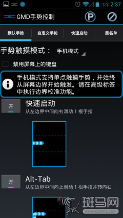 虽然两种操作方式不分伯仲,但至少可以适配全部屏幕尺寸的Android手机,当然预设的手势并不能完全的满足用户的使用需求,所以手机模式和平板模式都提供了自定义手势模式。