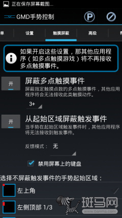 针对手势操作容易引起的误碰触问题,这款应用还提供了触摸屏蔽功能,可以根据用户需求选择关闭掉无用的触摸方式,选择特殊的识别触摸区域等。当然此类应用通病就是需要用户耐心的进行设置,相信这也是阻拦此类优秀应用在用户间传播的原因。