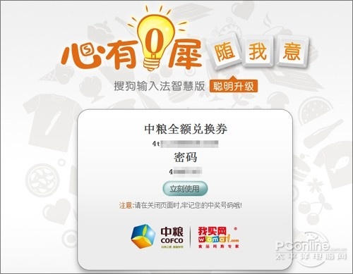 好吧,我知道大家都想来点实在的,那么这条“福利通知”就不容错过了。搜狗拼音智慧版2.0上线之初就为我们带来了很多优惠,分别是在12:00输入“中粮我买网”、14:00输入“凡客达人”和在16:00输入“万达电影”。如果一切无误的话输入法会提醒你领取一张优惠券,接下来跳转网站输入屏幕上的验证码即可可完成。不过根据小编测试,这个领奖时间其实并没有那样严格,就比如下面这张中粮优惠券就是小编在晚上9点申请成功的。接下来,几张截图献给大家,感兴趣的同学一定不要错过哈!