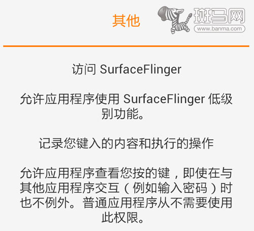 显示系统次级警报:允许应用程序显示系统警告窗口。恶意应用程序可借此操控整个屏幕。
