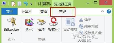 图示:Win8文件资源管理器“驱动器工具”分类中的“管理”选项卡