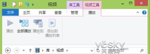 图示:Win8文件资源管理器“库工具”“视频工具”分类中的“管理”选项卡