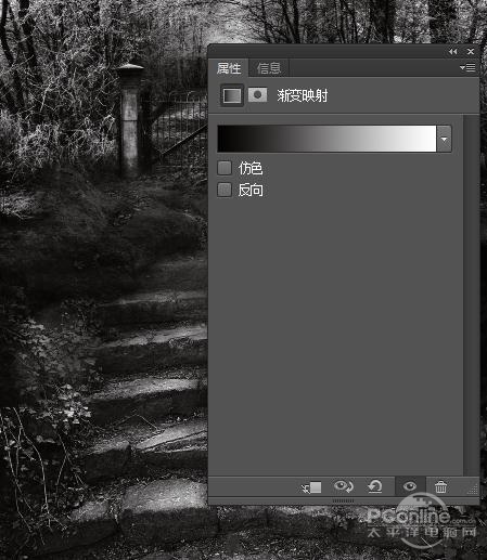 使用同样的设置调出“渐变映射”,这里将渐变颜色设置为“黑到白”渐变