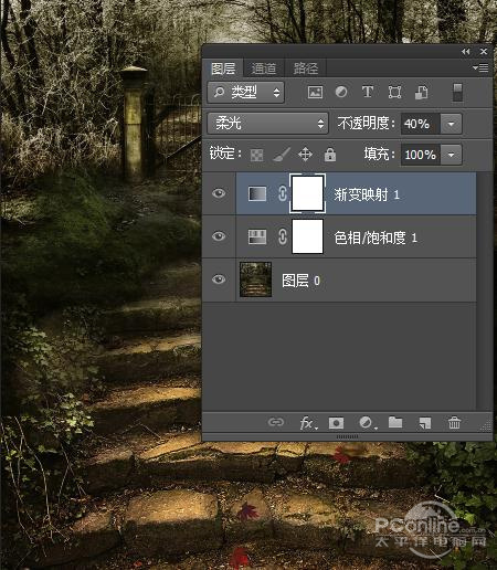 将图层的混合模式设置为“柔光”,不透明度设置为40%