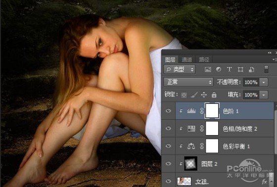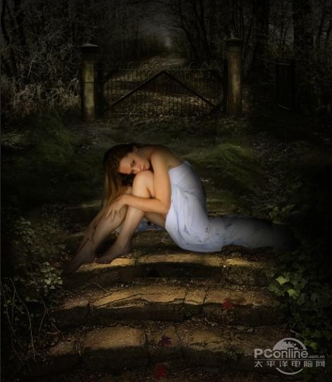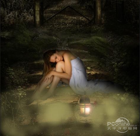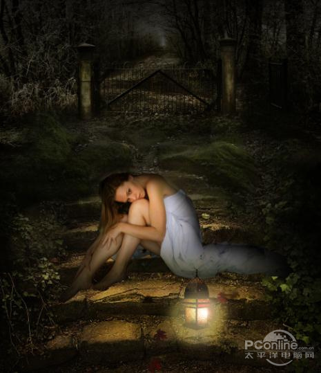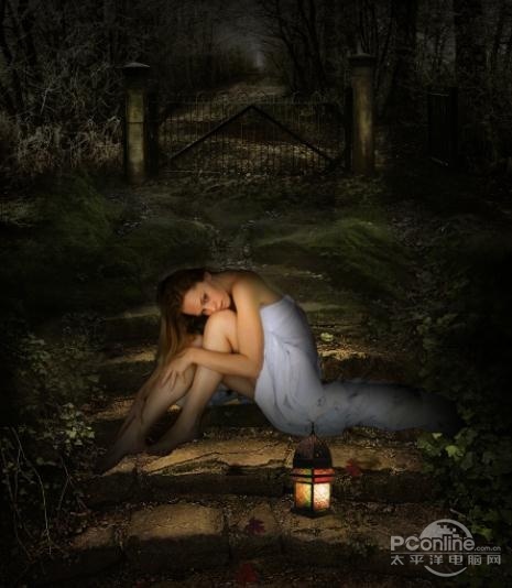 PS教程:Photoshop合成女孩孤独灯光场景