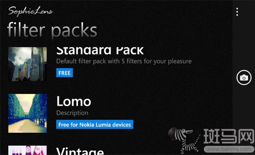 该应用给Lumia的相机提供了免费的2大类共计14种滤镜效果,与常见的图片后期处理的滤镜不同的是,这款应用的滤镜效果是实时作用在取景界面中的,做到了真正的“所见即所得”。
