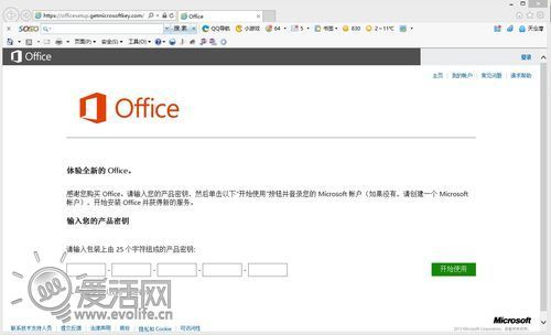 用Windows Live帐号登录http://office.com/,输入产品密匙,选择国家和语言后,就可以在“我的账户”里安装Office到本地,每安装一次后 可用的安装就会少一次。安装程序会下载Office的完整版,根据网速情况家里宽带大概下载10分钟左右。随后就能开启正式的Office之旅。