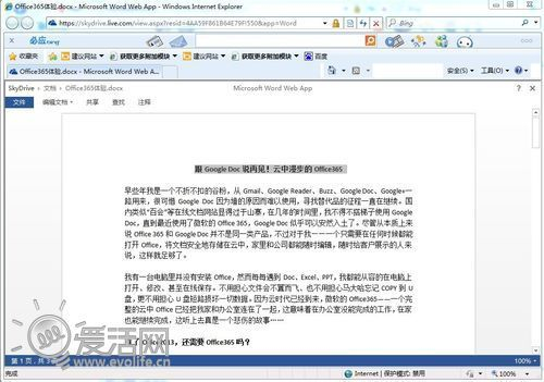 当我使用Office365写完这篇简短的使用体验时,微软的这套办公软件的全新商业模式也正改变着我的生活。重装电脑后,我不必满大街找Office序列号,只需要淡定地登录自己的Windows Live帐号,所有文档、在线的Office软件全都手到擒来。