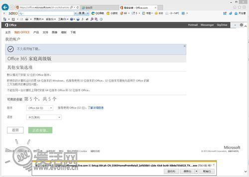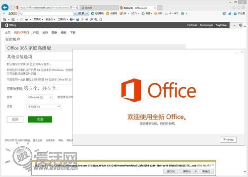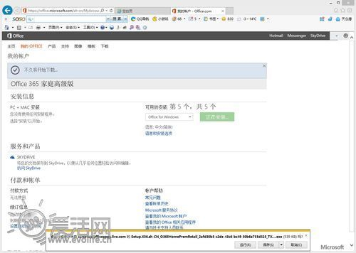 前文说了,Office365可以安装在最多5台设备上,它的安装非常简单。