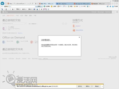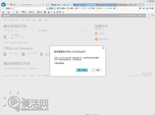 那么是不是只有授权的5台电脑才能使用Office365?很显然不是,在登录http://office.com/后,网页上显示的 “Office on Demand”功能就是为未授权设备准备的。点开“Office on Demand”里的Word、Excel、PowerPoint、 OneNote、Outlook、Publisher和Access组件,程序在经过短暂地下载虚拟版本的Web Office应用后,你所熟悉的Office界面就会出现在桌面上,它是一个云端的程序,但界面却和Office2013一模一样,不但可以正常查看和编 辑文档,亦有完整的程序窗口。