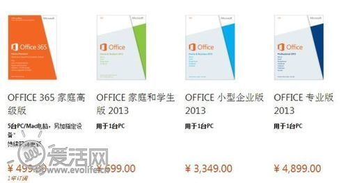 你并不须要事先购买Office2013才能使用Office365,你的电脑里可以只有老版本的Office,甚至没装过Office都行。跟大 多数的云服务一样,它是按需收费,家庭版每年499元 RMB ,就可以获得Word、Excel、PowerPoint、 OneNote、Outlook、Publisher和Access。这些组件可以安装在最多5台设备上,包括Win8平板、PC或是MAC。说是组件, 其实就是个完整的家庭版Office。Office365用户的SKYDRIVE版本也会从原本免费的7G增加至30G,这个容量能满足大部分的日常需求 了,还会获赠每月60分钟的Skype国际通话时间。事实上电脑越多,Office365的性价比就越能体现。