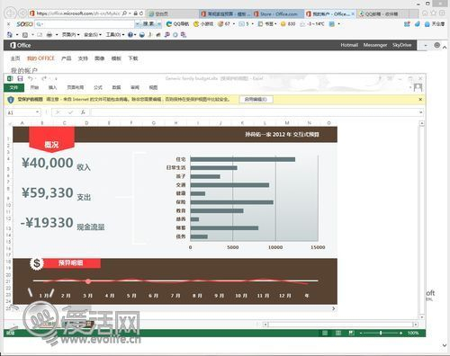 Office365在网页上就提供了多种模版、图像供下载使用。以Excel模版为例,看到使用模版能自由编辑“家庭交互式预算”数据,我等office小白泪流满面,高端大气又无需自己手动写公式,实用装逼两相宜。