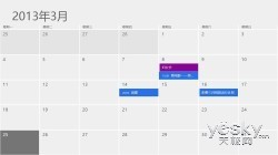 日历中的录会同步到微软账户中,并且在预定时间给出提醒消息,点击即可查看。如果Windows Phone手机与Win8使用同一个微软帐户,无论是修改还是提醒,多设备中的日历计划都将实时同步。