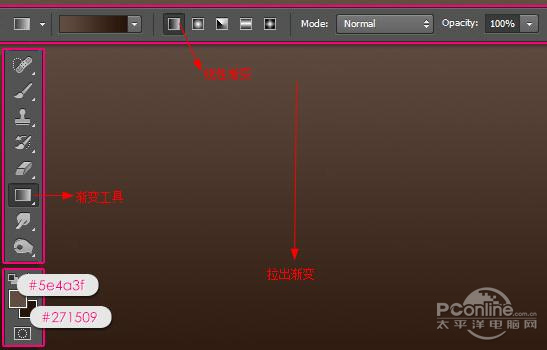 1.创建一个1152*864像素的文档,如下图所示设置前景与背景色,选择“渐变工具”,点击“线性渐变”按钮,从上到下拉出渐变。