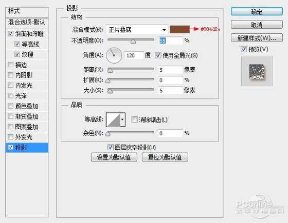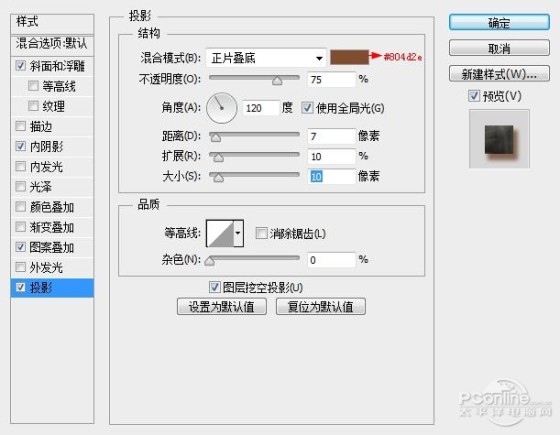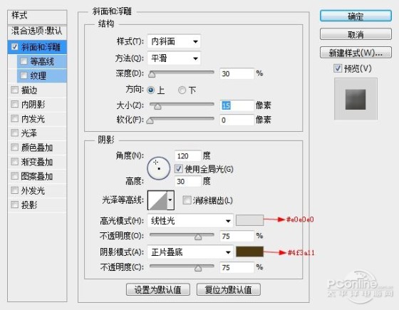 4.双击“文本副本”图层,调出“图层样式”,并如下设置图层样式选项。