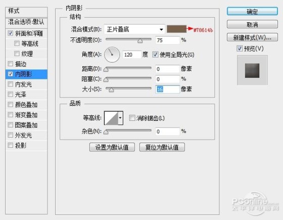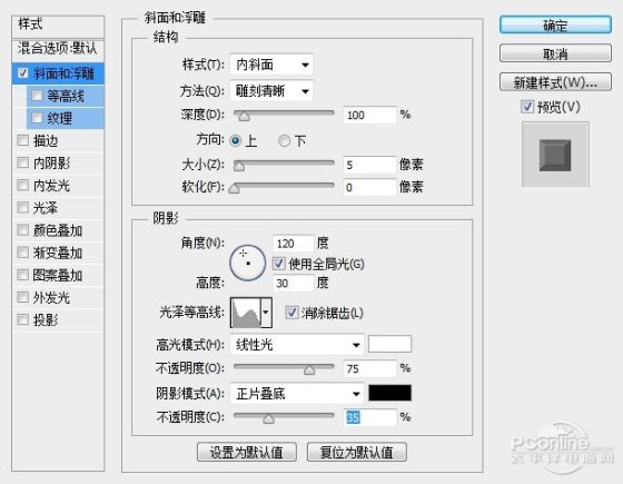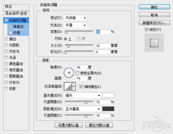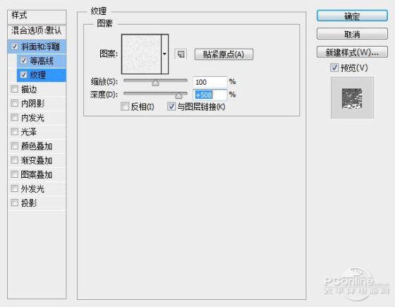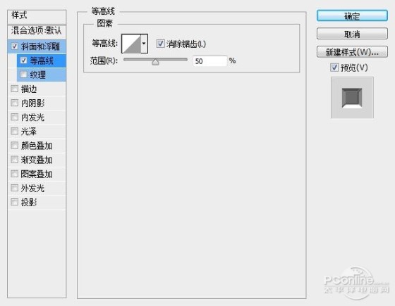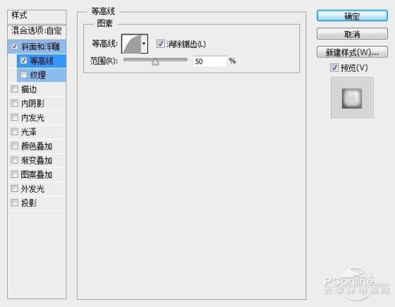 双击“图层1”调出“图层样式”我们应用下列“图层样式”选项