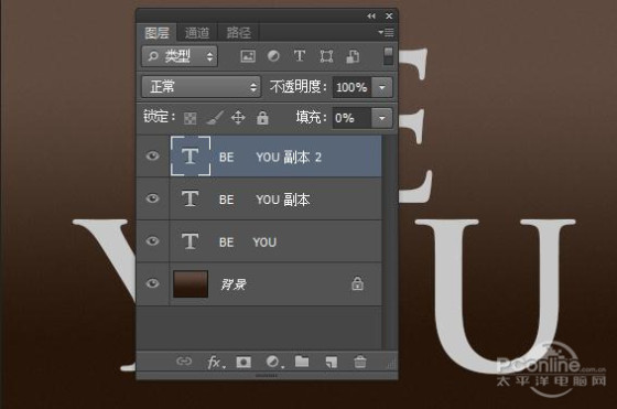 然后复制文本层,得到文本副本,将文本副本的填充设置为0%,在复制文本副本得到文本副本2