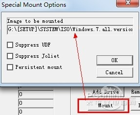 3、点击Mount(安装),载入你的ISO虚拟光盘文件,点击OK,虚拟光盘文件就被成功载入了,可以在我的电脑里看到刚刚载入的虚拟光盘文件。