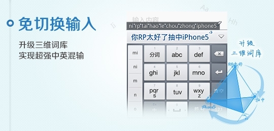 百度Android手机输入法3.6今天正式发布,新版升级了内核功能,提供了免切换输入、智能组词、联系人昵称识别等功能。