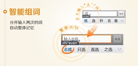 2、智能组词,可以自动将分开输入的词整体记忆,输入两次后可以直接打出。