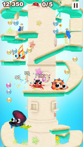除了经典的跳跃题材元素,游戏里还融入了街机玩法,具有一定的挑战性,需要玩家专注操控,画面效果采用了3D制作,更为立体,帅气的螃蟹先生带着小礼帽营救螃蟹宝宝,游戏节奏稍快,在前期不熟悉的时候可能会玩的有点晕。