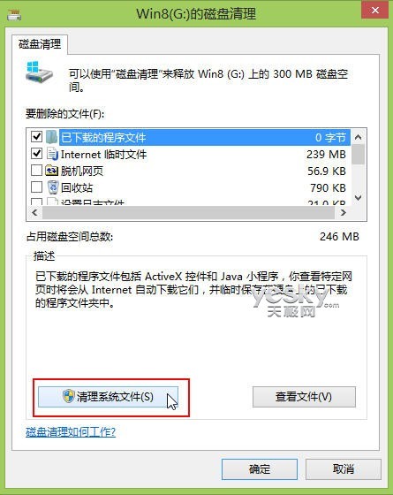现在我们进入Win8的磁盘清理界面,点击“清理系统文件”按钮。