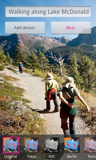 照片流(photostreams)现在由改成了黑色背景上的照片磁帖风格,尺寸也各不相同(但压缩比例还不太完美),同时新增了滑出导航菜单和新的滤镜界面。