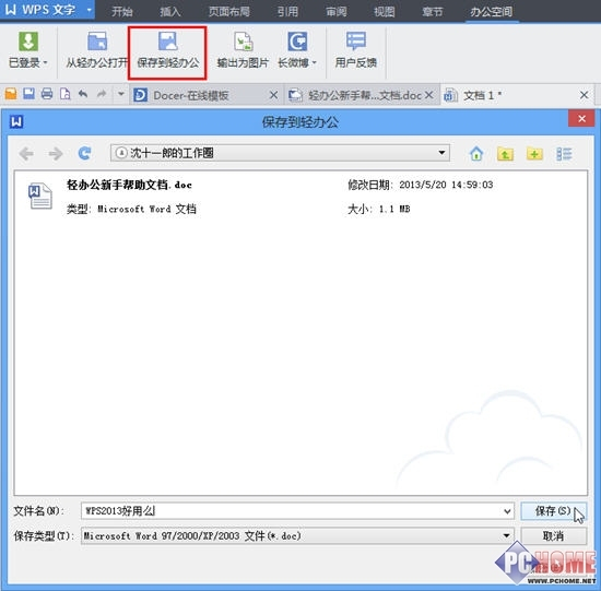 直接可另存为到“轻办公”