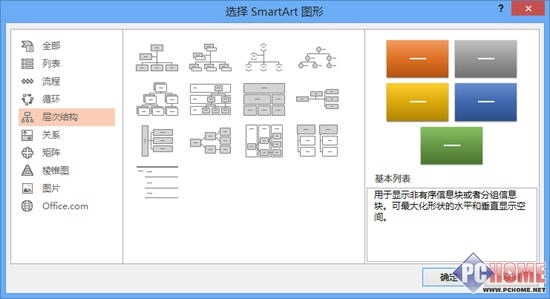 同样,微软PPT也有SmartArt图形的“层次结构”,看图案其实就是WPS2013所增加的组织结构图。