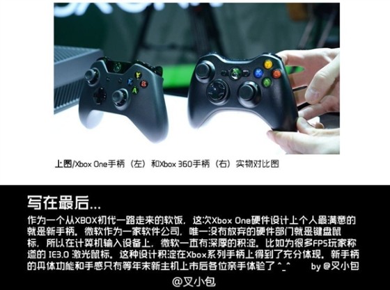 现在,随着微软Xbox One游戏主机的正式发布,新一代Xbox无线手柄也随之亮相。从外观来看,此次推出Xbox One手柄比以往的同类产品更具科技感,手柄的人体工程学设计和部分键位的变化使其更加符合新一代游戏机的需要。同时,从国外媒体的试玩来看,其手感也非常不错。