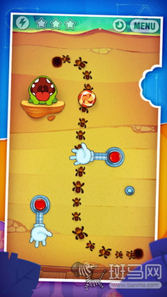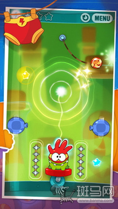 游戏需要玩家通过手指划断系着糖果的绳子,让糖果准确的落到小怪兽的口中(我总是觉得这个怪兽看起来像青蛙),除了让它吃掉糖果,玩家还需要收集闪亮的星星用来解锁之后的关卡,只过关没有星星也是不行的哦。