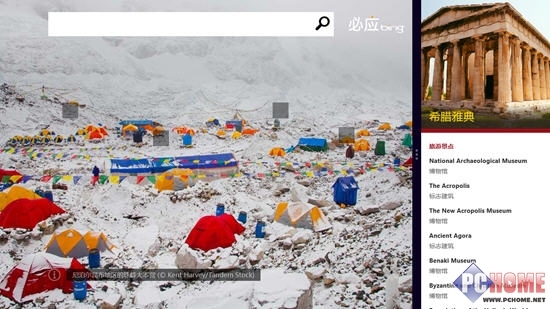 在Win8操作系统里,打开多个程序之后,可以在执行当前程序的同时,从侧栏浏览其他打开但是挂起的程序。比如下图里一边浏览体育报道,一边还能看必应旅游所提供的图文内容。