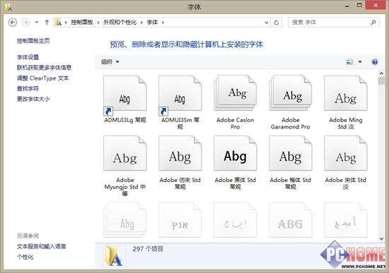 按CTRL+Q,搜索“控制面板”,点击“外观和个性化”,进入字体设置,可以看到系统里的全部字体。