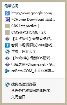 比如,右键任务栏浏览器程序图标后,会显示最近访问的10个网页地址(如果用户把显示数量设置为10的话)。