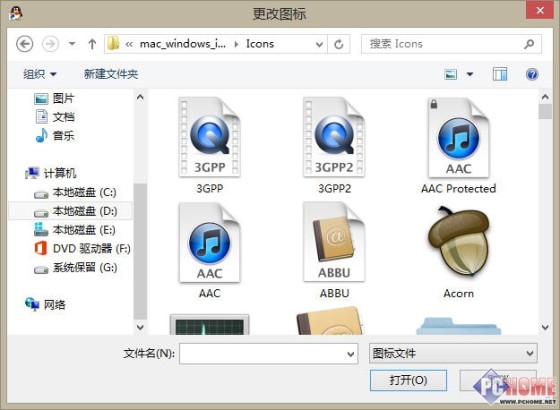也可以从网上下载图标格式文件,找到存放目录,点击“确定”就可以更换。