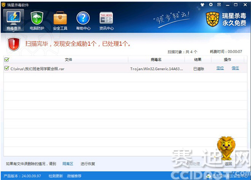 图1:瑞星杀毒软件V16已经可以彻底查杀各种“QQ大盗”木马病毒